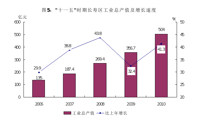 随着长寿“两园三片一廊”建设的快速推进,工业生产迅猛发展。全年全区实现工业增加值99.5亿元,增长26.2%,对全区经济增长的贡献率高达58.5%,拉动全区经济增长11.3个百分点。全区工业总产值迈上新台阶,突破500亿元,达到504亿元,增长41.3%,其中规上工业完成总产值395.5亿元,增长62.4%;区属工业完成总产值294.9亿元,增长50.5%。全年全区工业企业产销衔接良好,全区工业产品产销率为 95.53%,比上年同期上升0.36个百分点。