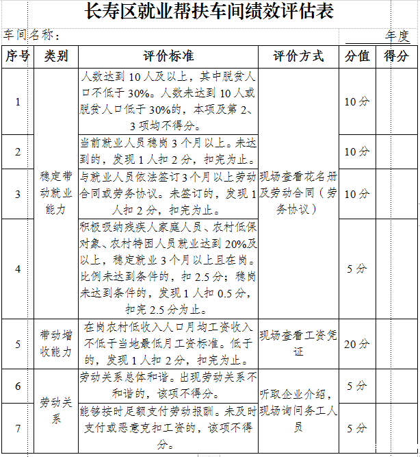 3.长寿区就业帮扶车间绩效评估表