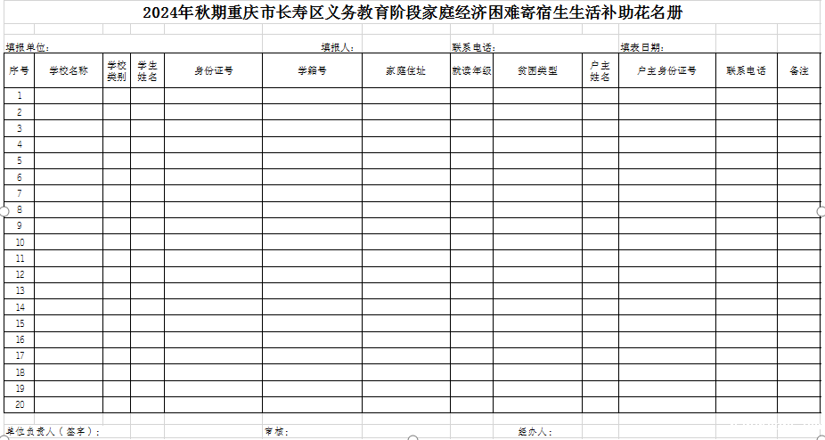 学校按照《重庆市长寿区教育委员会等七部门关于印发<重庆市长寿区家庭经济困难学生认定办法(修订)>的通知》(长教发〔2023〕17号)要求,对家庭经济困难学生提交的申请材料进行审核,将审核确定名单在校内醒目位置公示5个工作日。公示无异议后,学校填写《重庆市长寿区义务教育阶段家庭经济困难学生生活补助汇总表》(附件3),并在全国学生资助系统中录入相关信息。